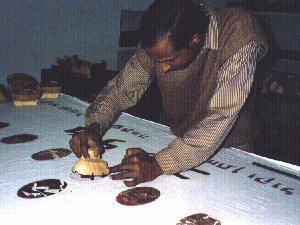 Each woodblock is individually hand carved from Shlomo's designs.